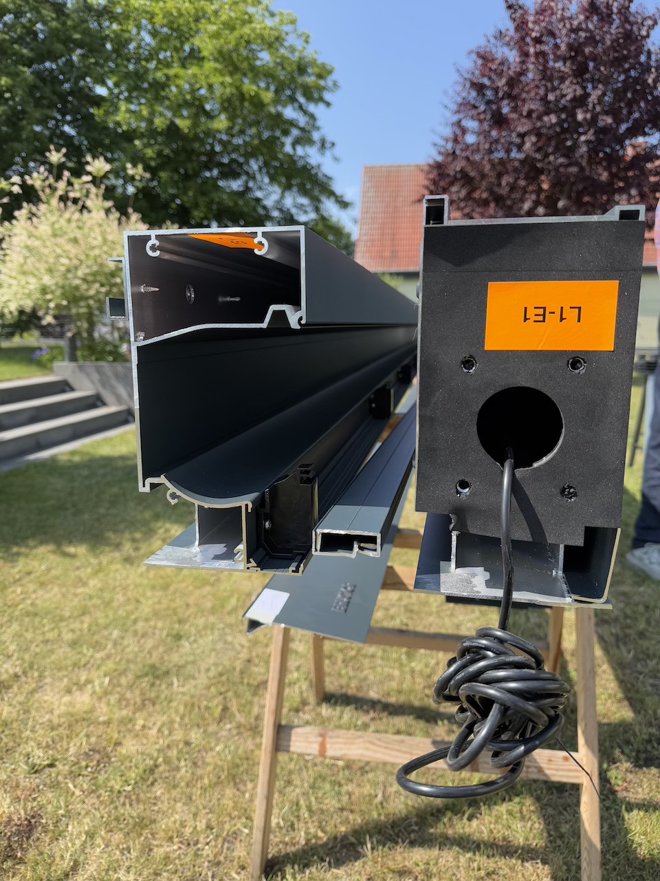Ein besonderes Highlight dieses Systems sind die Lamellen in Holzoptik im Eiche-Farbton. Sie vereinen die warme, natürliche Ausstrahlung von Holz mit der Langlebigkeit und Pflegeleichtigkeit pulverbeschichteten Aluminiums. Anders als bei bloß folierten Lamellen sind diese durchgängig aus hochwertigem Aluminium gefertigt und behalten dauerhaft ihre Farbe, Form und Struktur – ganz ohne Verformung oder Verfärbung. Das Ergebnis ist eine elegante Holz-Anmutung, die Ihrer Terrasse Charakter verleiht, ohne die Nachteile echten Holzes.