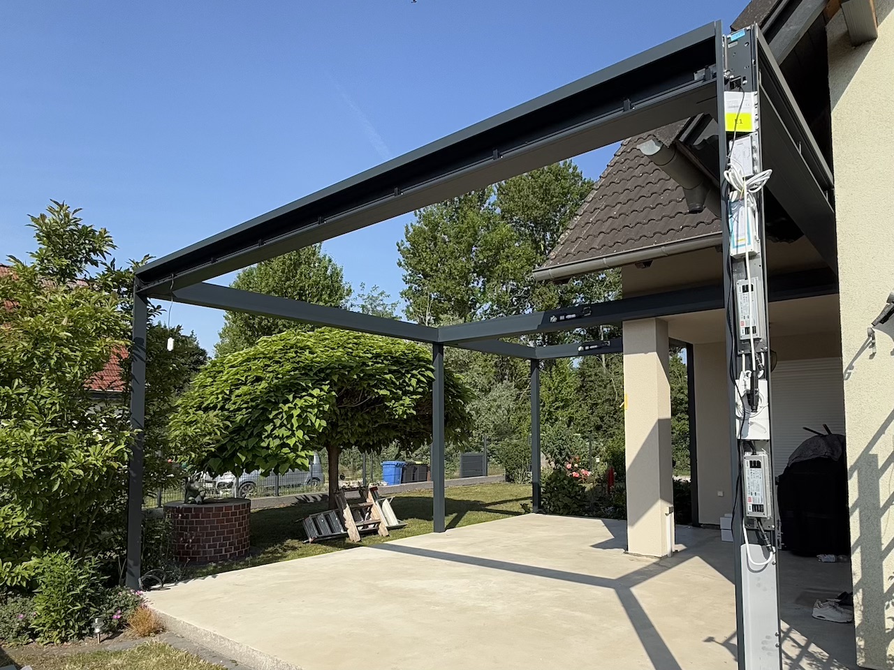 Ergänzend lässt sich die Überdachung mit komfortabler Ausstattung wie integrierter LED-Beleuchtung, Heizstrahlern oder Sonnenschutz-Screens erweitern – ideal für stilvolle Lounge-Abende oder entspannte Stunden im Freien.