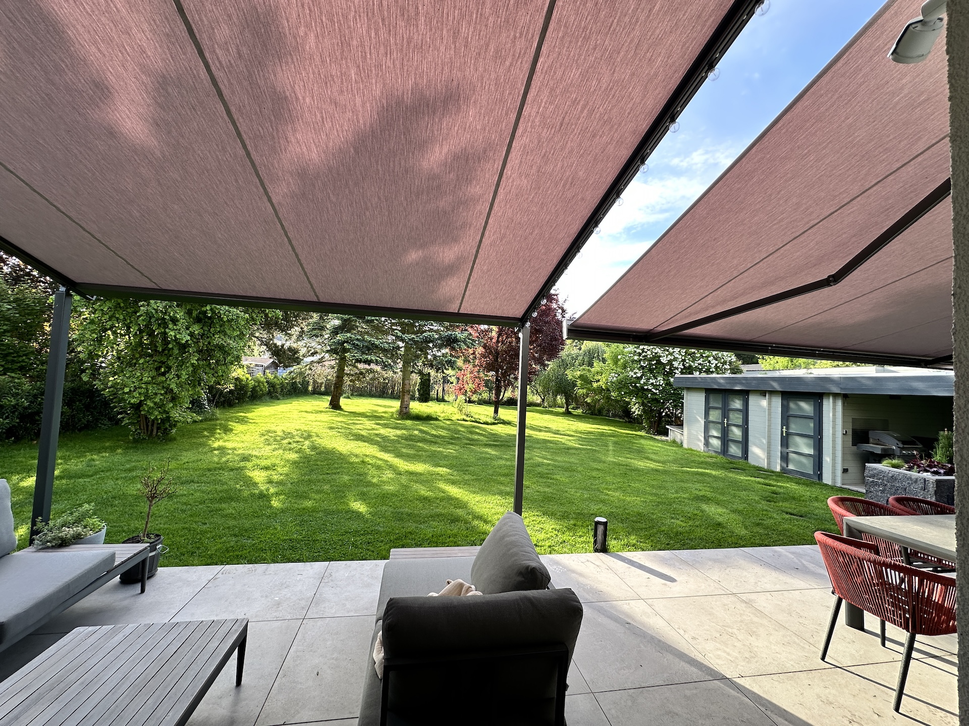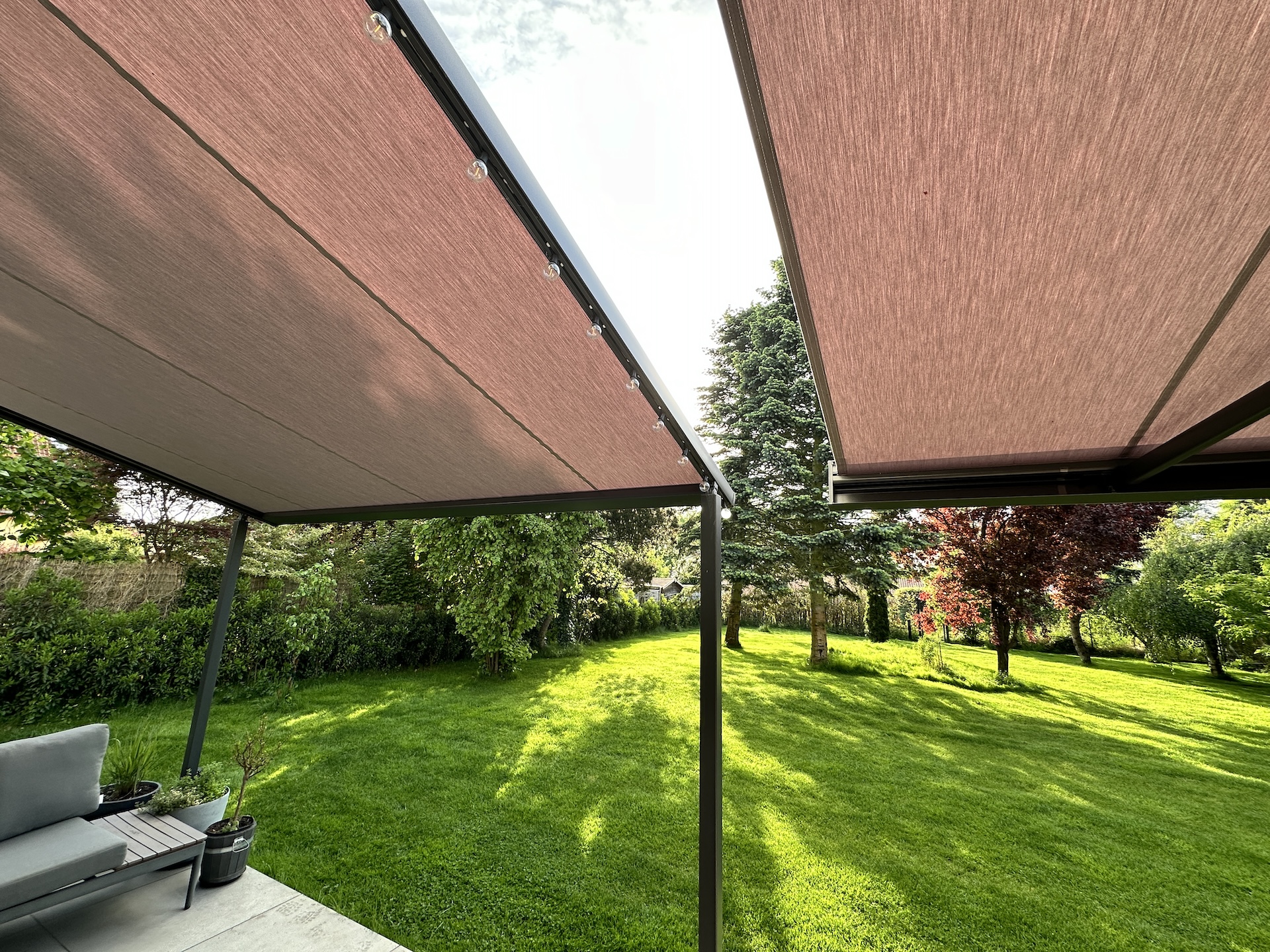Pergolamarkise mit Kassettenmarkise kombiniert