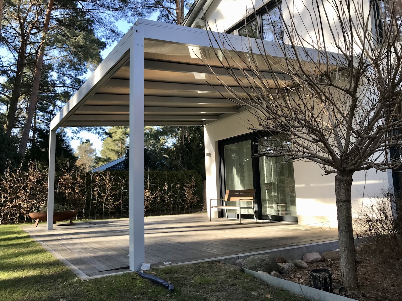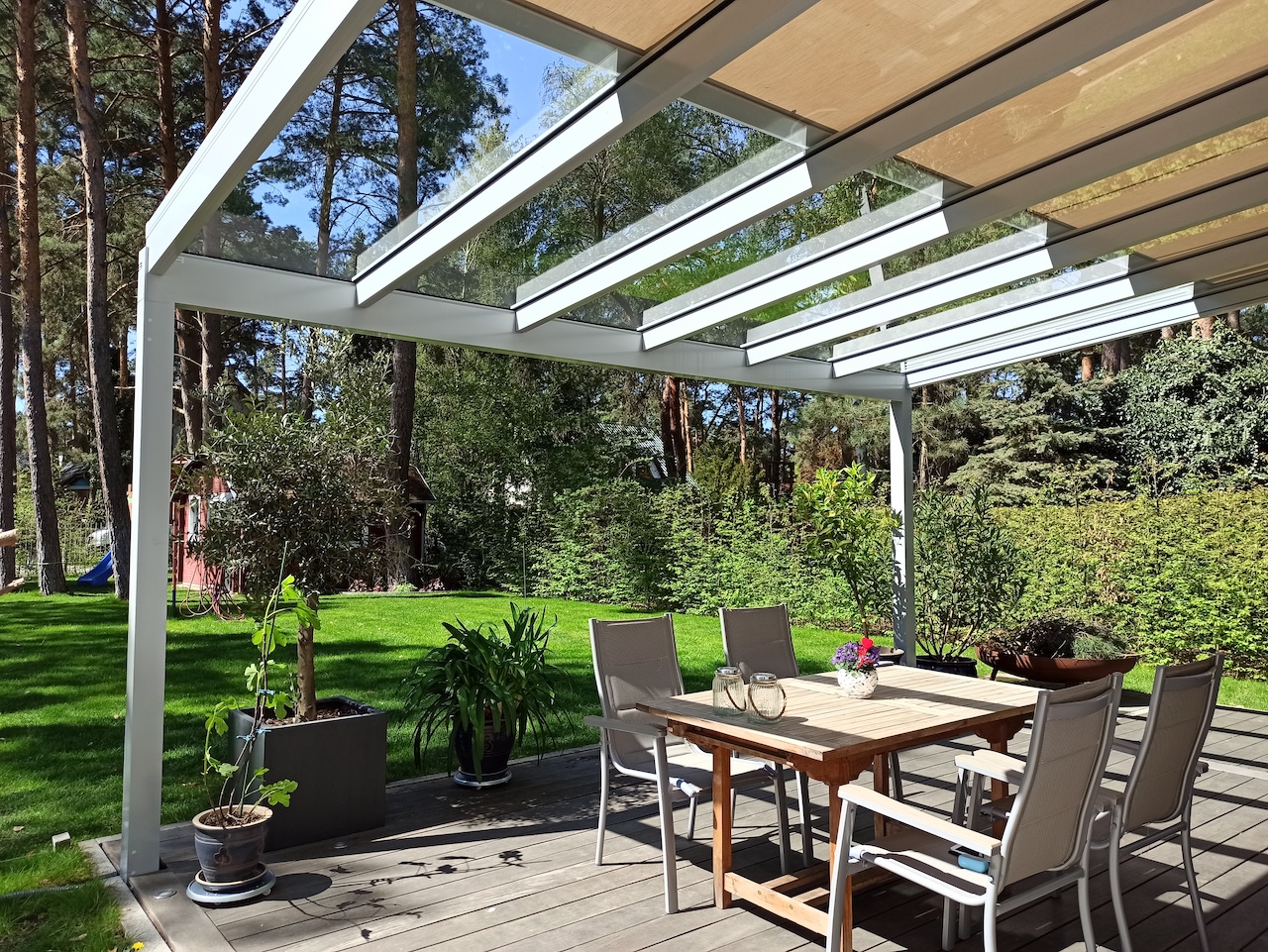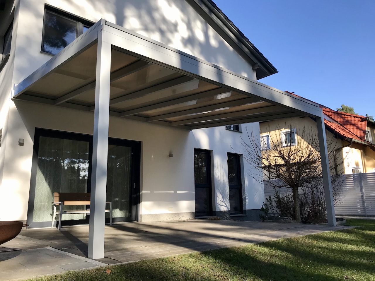 Aluminium Terrassendach aus Glas, Referenzobjekt in 15366 Hoppegarten bei Berlin OT Waldesruh – Klaiber Glasdach NYON