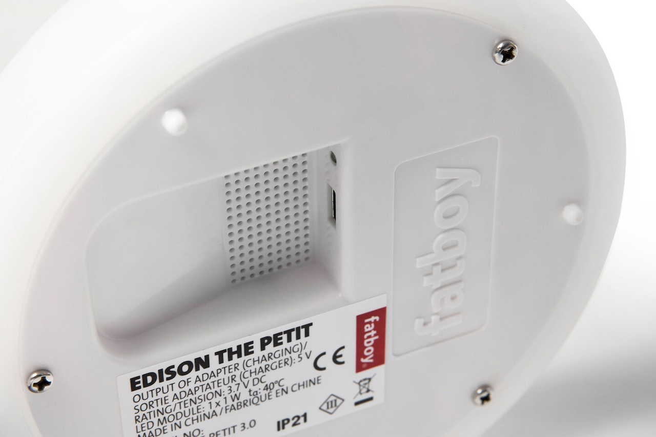 Die kompakte, weiße Tischleuchte für drinnen und draußen – leicht, mobil und überall einsetzbar. Edison the Petit wird bequem per USB geladen und schafft bis zu 24 Stunden stimmungsvolles Licht, ganz ohne Steckdose.
