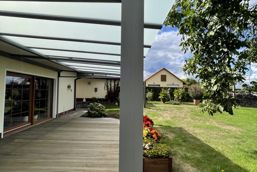 Die vielfältigen Erweiterungsmöglichkeiten zum Beispiel Beschattungen und Seitenverglasungen, lassen Spielraum dieses Dach perfekt an die individuellen Bedürnisse anzupassen.